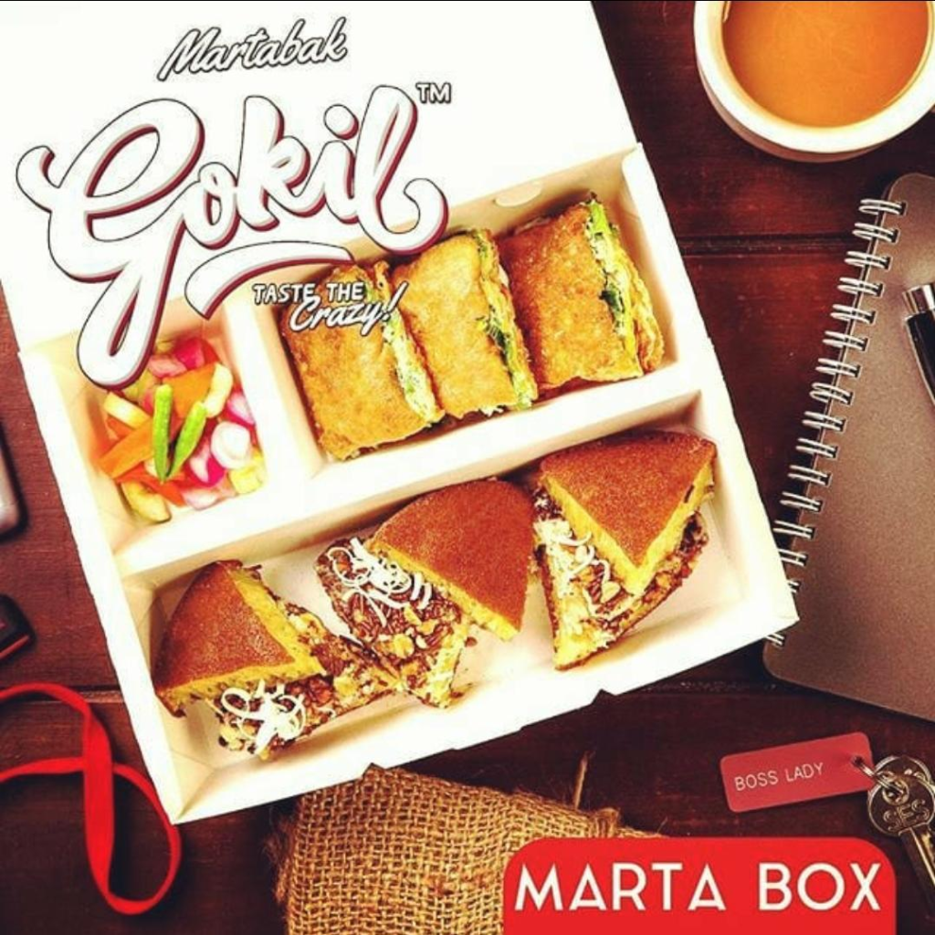مارتابا جوكيل ميقدم أرتاباك الفريد من نوعه ثمانية إلى ستة عشر طبقة بما في ذلك ميلو وأوريو والفواكه. مجموعة متنوعة من نكهات العجينة الناعمة مع خيارات متنوعة. يمكنك أيضًا طلب مطبق البيض مع البطاطس المقلية وجبنة الموزاريلا الذائبة والإضافات المختلفة. العنوان: سارينه مول(Mall Sarinah)، تمرين(Thamrin). السعر: 85000 روبية – 300000 روبية للشخص. ساعات العمل: أيام الأسبوع (02:00 مساءً – 12:00 صباحًا)، عطلات نهاية الأسبوع (02:00 مساءً – 02:00 صباحًا).